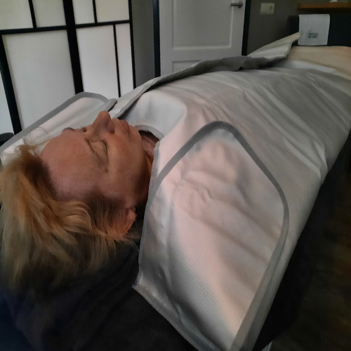 Deze behandeling begint met een massage met Magnesium Aloë Vera Gel. De warme infrarood deken brengt je vervolgens warmte en rust. Het opent de poriën wat zorgt voor de optimale opname van magnesium. De Aloë Vera Gel voelt zacht en verfrissend aan en heeft een helende, genezende werking. Tijdens de lichaamspakking geniet je van een ontspannende gezichtsmassage. Deze behandeling is uitermate geschikt bij fibromyalgie, artrose en reuma.