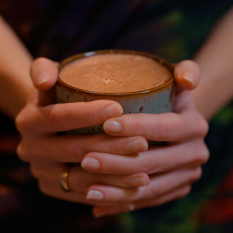 Voordat je afspraak begint, reinig ik de ruimte met aangestoken Palo Santo hout. Als je binnenkomt maak ik in jouw bijzijn een mok rauwe cacao met warme havermelk, aangevuld met óf vanille, kaneel en andere specerijen voor een milde ervaring óf met een wat meer spicy mix van kuiden voor een wat pittigere smaak.